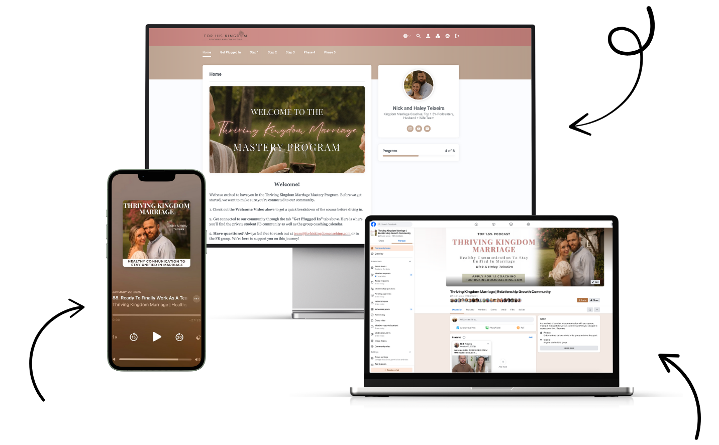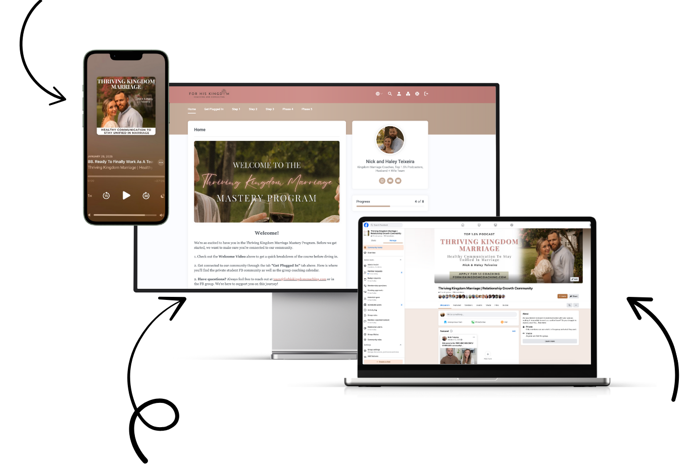 Join the growing number of couples transforming their marriages through biblical wisdom and practical coaching! From effective communication and emotional healing, to building a strong, Christ-centered relationship— this group coaching program equips you with all the tools you need to cultivate a godly marriage that lasts. If you're ready to break free from unhealthy patterns, grow in unity, and walk in God's beautiful design for marriage, Thriving Kingdom Marriage Mastery is for you!