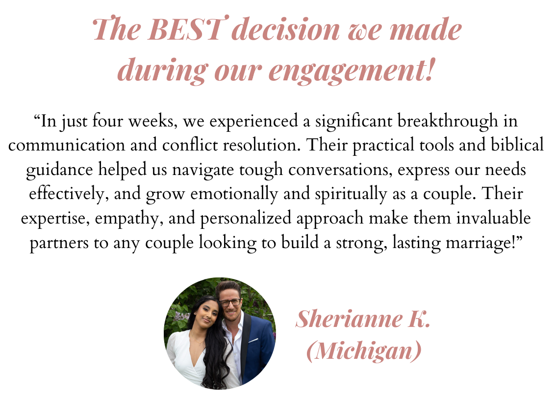 Now, we help couples break free from unhealthy patterns and communicate with love and clarity so they can create (and sustain) the thriving kingdom marriage God desires for them.