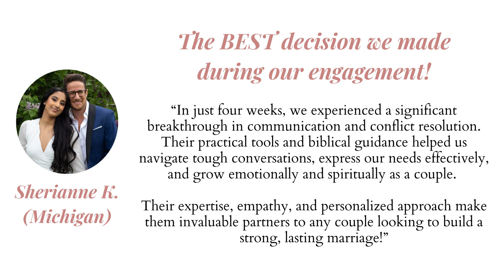 This program is still a great fit for engaged couples who want to build a strong foundation before marriage. The tools and principles you’ll learn will help you establish healthy habits, improve communication, and prevent common issues before they arise, setting you up for a successful and fulfilling marriage. If that's you, kudos to you for being super proactive!